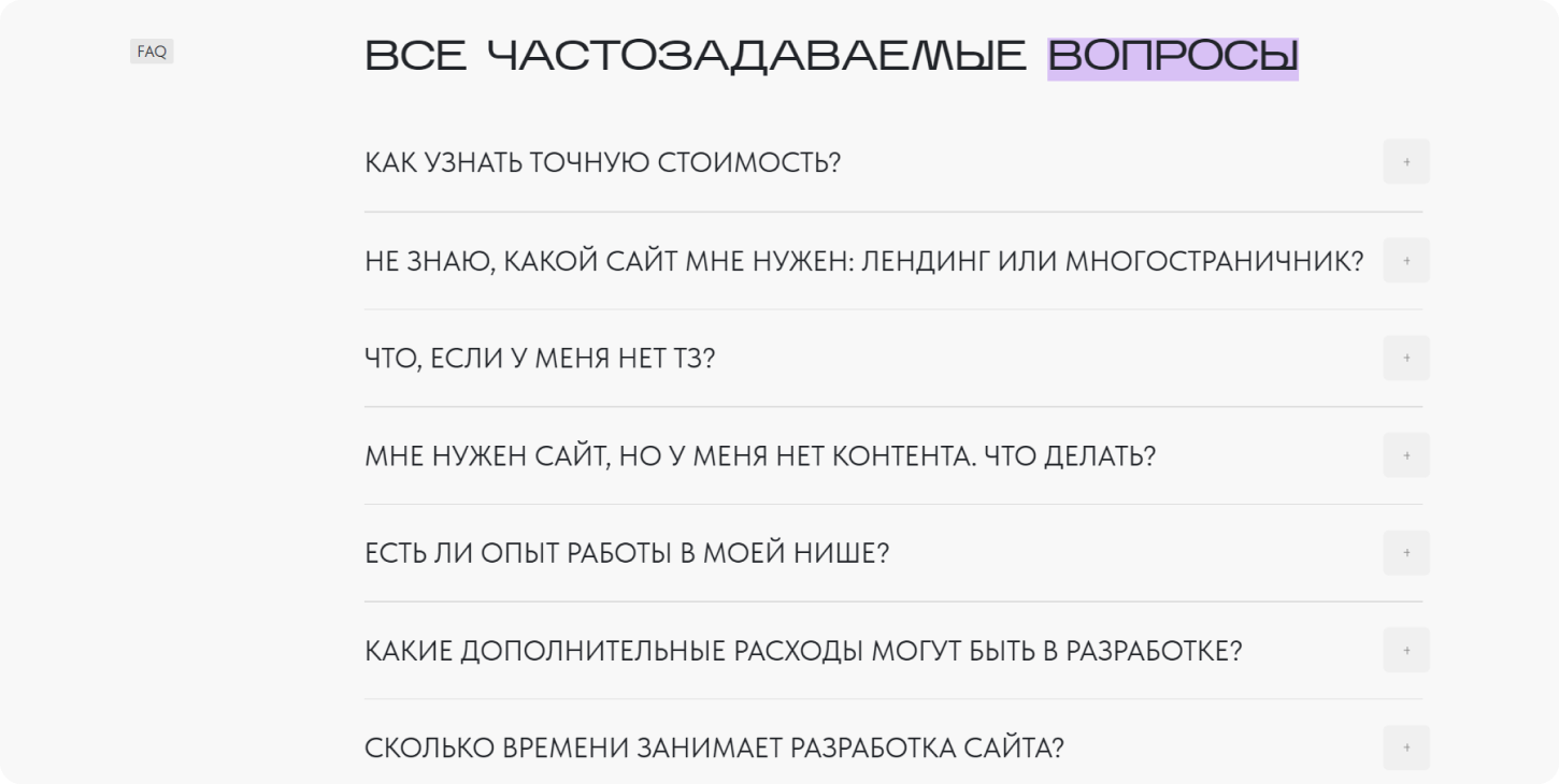 Если на сайте нет ответов на типовые вопросы, то они появятся в голове клиента.